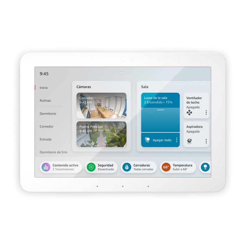 Presentamos El Echo Hub — Un Panel Fácil De Usar Para Tus Dispositivos De Casa Inteligente; Solo Pídele Algo A Alexa O Toca La Pantalla Para Controlar Tus Luces, Enchufes Inteligentes, El Video De Tus Cámaras Y Más. ¡Personalización Para Tu Casa Inteligente A Un Precio Accesible!